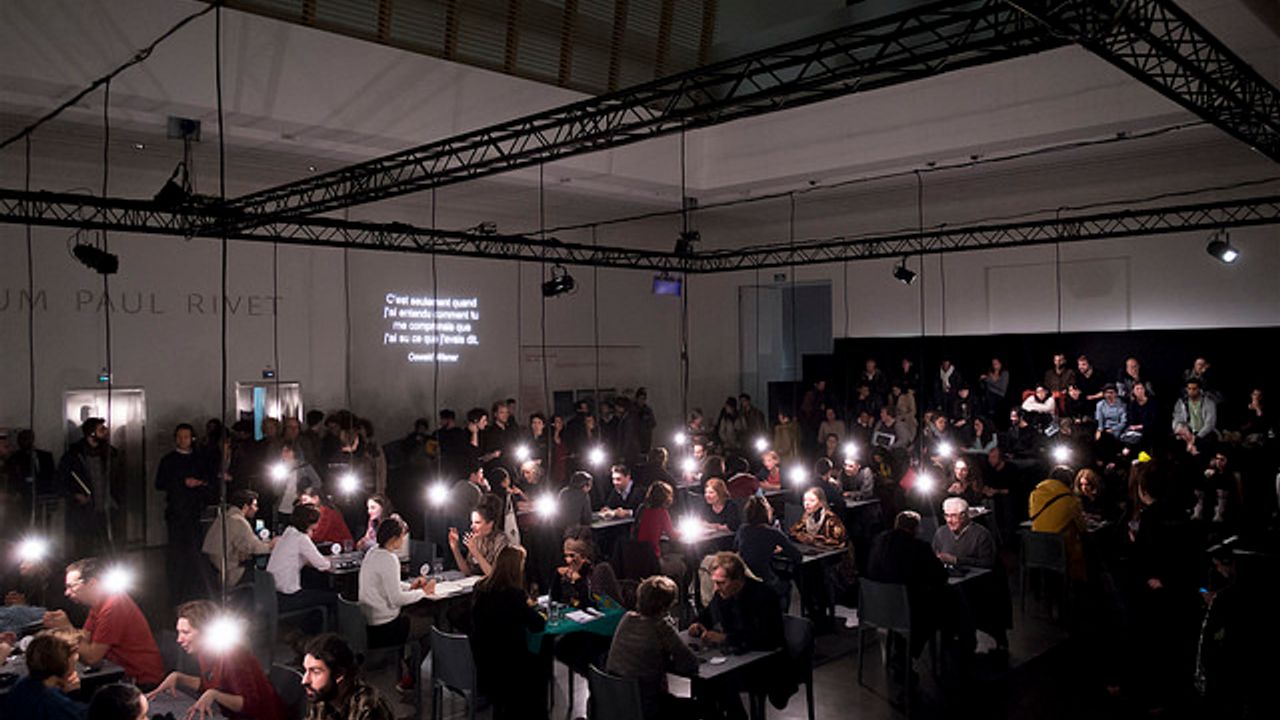 Projet hybride, entre performance artistique, conférence scientifique et expérience humaine unique, Blackmarket for Useful knowledge and non-knowledge (littéralement « Un marché noir de la connaissance utile et du non-savoir ») propose une réponse à ce défi. Pour sa 18e occurrence et en lien avec la COP21, le projet s’est installé le 21 novembre dans l’atrium du Musée de l’Homme à Paris, qui vient tout juste de rouvrir ses portes.