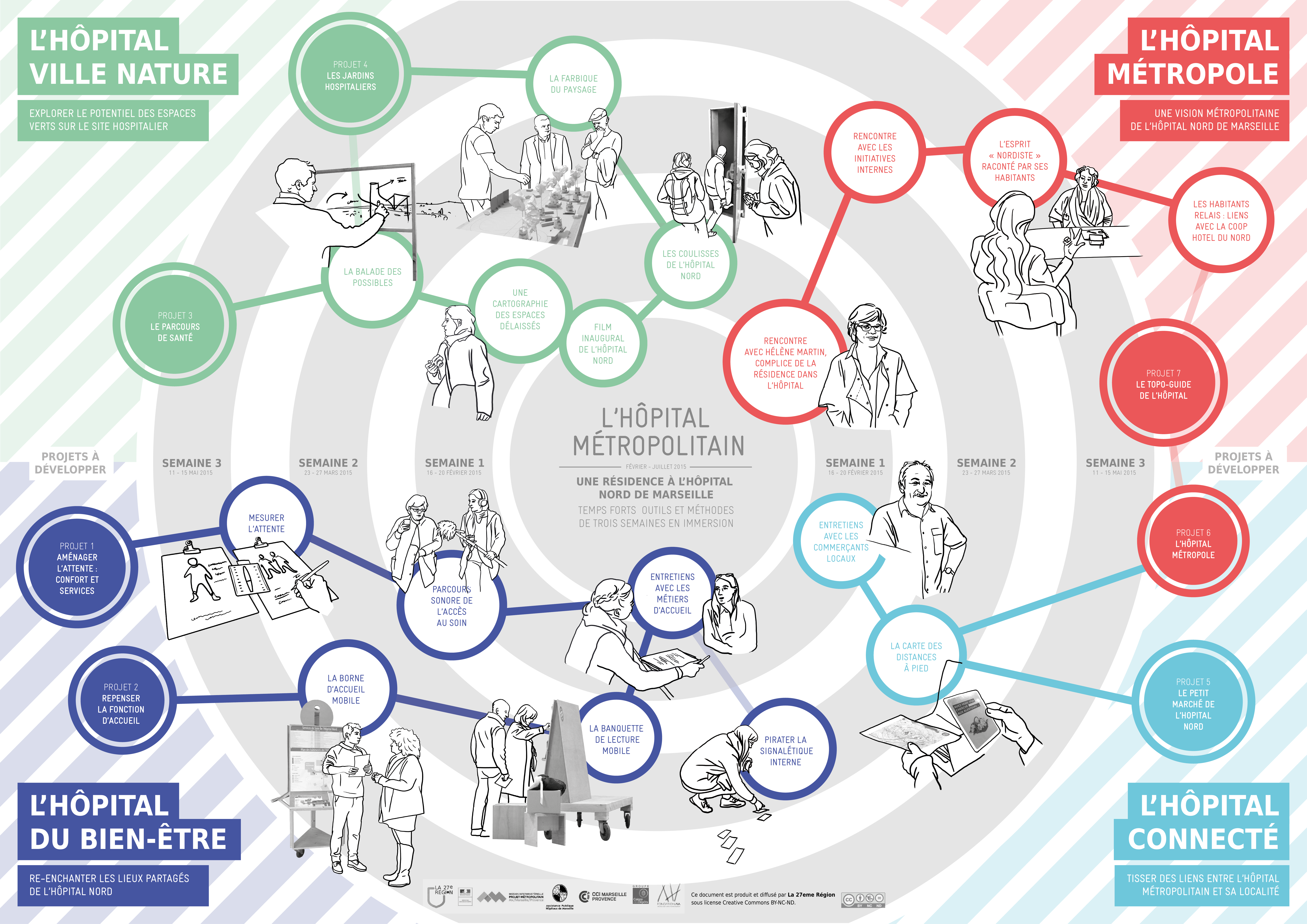 Courant 2015, la Mission interministérielle pour le projet métropolitain Aix-Marseille-Provence sollicite la 27eme Région pour mener une démarche prospective et créative sur la future métropole, depuis un équipement qualifié de « sentinelle » : l'Hôpital Nord de Marseille.