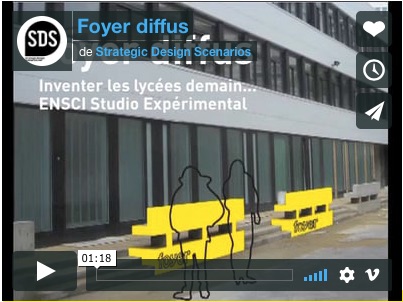 Octobre 2010, « L’Echantillonneur de lycées ». Fin 2010, la Région Nord-Pas de Calais réfléchit à un nouveau référentiel pour la programmation de ses lycées à l’échéance 2030. Mais comment sortir des visions en silos, additionnant les visions réglementaires, fonctionnelles, architecturales, pédagogiques, économiques, culturelles et sociales sans jamais réussir à les articuler entre elles ? Comment penser les lycées en se mettant dans les peau des usagers du futur, lycéens, enseignants, parents, équipes administratives ? Quels lycées voulons-nous pour demain ? A partir de plusieurs résidences déjà réalisées dans des lycées, la Région Nord-Pas de Calais et Champagne-Ardenne se sont associées à la 27e Région et aux élèves de l’ENSCI pour concevoir ensemble un nuancier de propositions, détaillées en images, scénarios et projections, et pouvant prendre la forme d’un livret, d’une présentation powerpoint, ou d’une exposition. Il comprend des pistes prospectives mais aussi des études de cas de projets ou de programmes innovants menés en Europe. L’échantillonneur vise autant à donner un référentiel d’idées innovantes aux acteurs qui inventent le lycée aujourd’hui, qu’à outiller la décision politique. Il vise également à remettre l’usager (étudiant, enseignant, parent ou intervenant) au coeur des politiques éducatives. Une petite vidéo permet de comprendre son fonctionnement. Sylvain Petit, directeur adjoint aux formations initiales encore en poste aujourd’hui, s’est servi de l’Echantillonneur pour co-produire avec agents et élus la programmation qui concerne les 257 lycées alors existant sur le territoire du Nord-Pas de Calais.