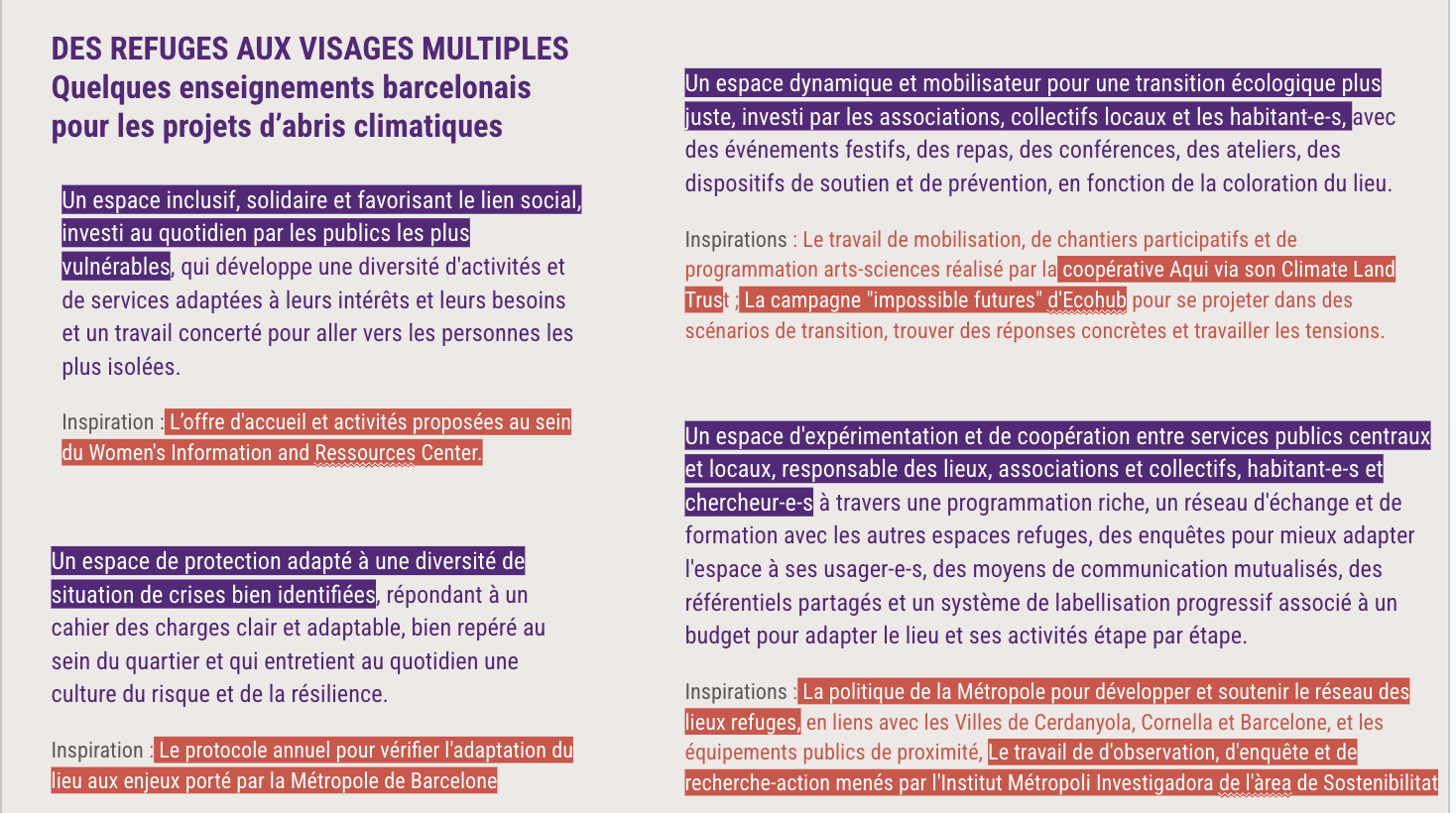 Ce parcours nous a permis de tirer quelques enseignements sur ce que pourraient être des refuges climatiques :