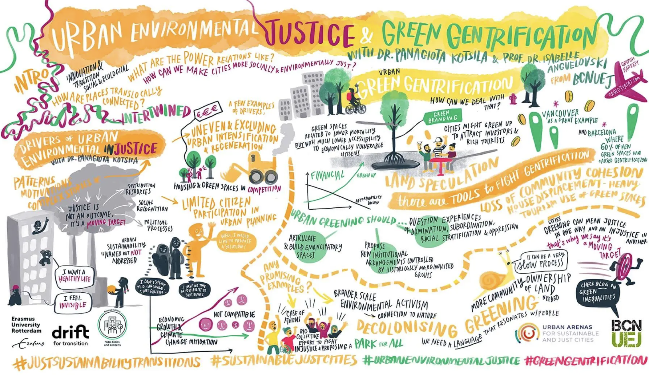 Coté recherche, Mar Satorras, de l’Institut Métropoli Investigadora de l’àrea de Sostenibilitat, nous a partagé son travail sur les indicateurs et méthodes d’enquête permettant d’identifier les personnes et les quartiers les plus vulnérables aux vagues de chaleur, et inclure les personnes concernées dans la collecte des données. Dans quelle mesure les politiques d’adaptation et de verdissement des métropoles sont-elles des vecteurs de gentrification des quartiers ? Isabelle Anguelovski, directrice du Barcelona Lab for urban environment, justice and sustainability (BCNUEJ) nous a présenté ses recherches sur ce sujet. Enfin, avec l’équipe Transformative innovation de la Région Catalogne (Generalitat de Catalunya,) nous avons découvert comment celle-ci anime une stratégie de transition écologique juste et inclusive sous forme d’une approche systémique et par coalitions, appuyée par la recherche. Pour retrouver un aperçu plus détaillé du programme et des organisations rencontrées, c’est par là !